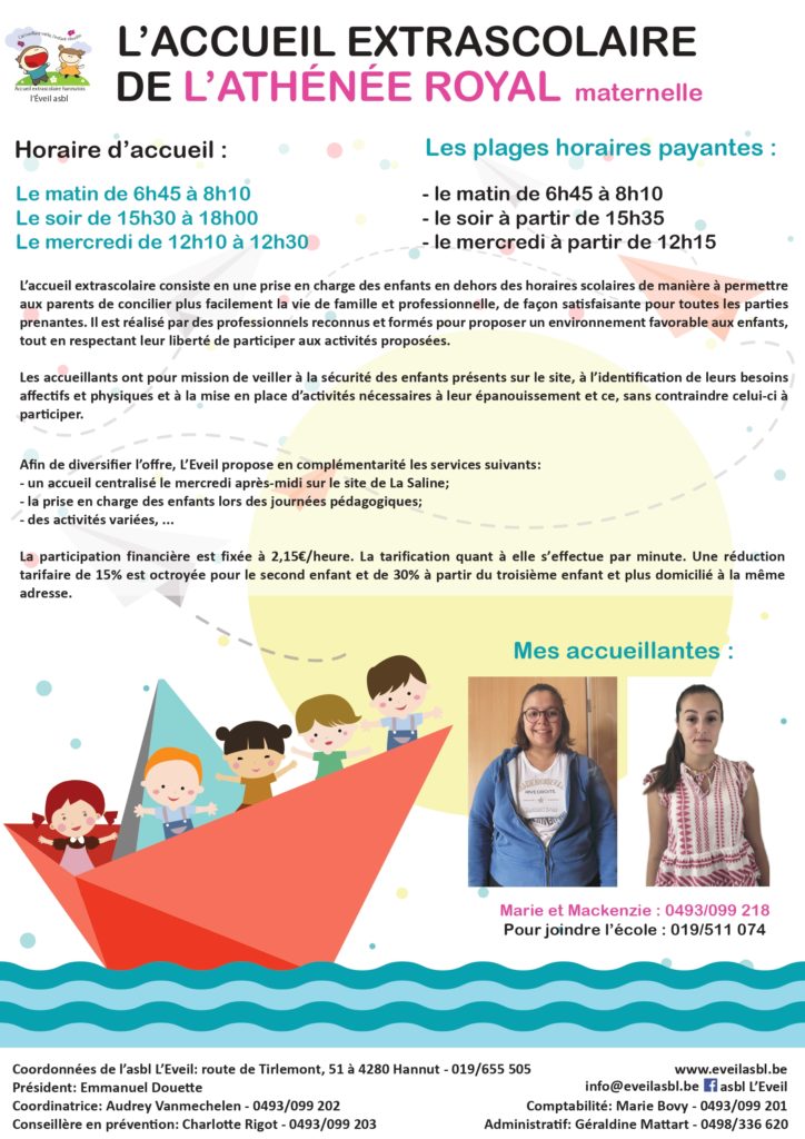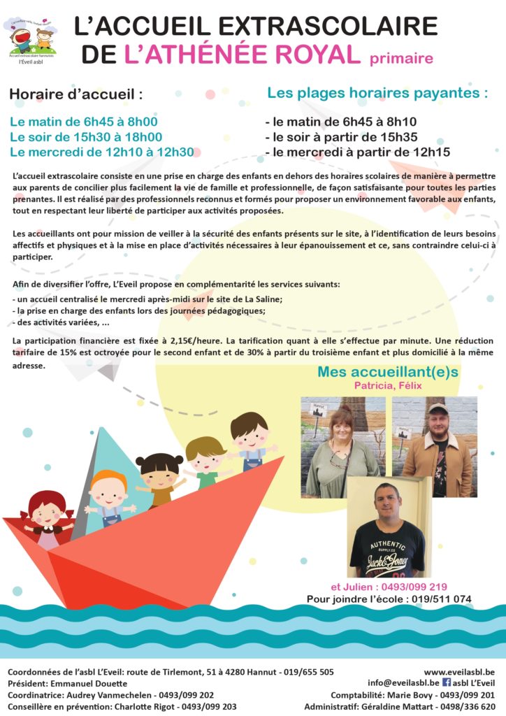 de 6h45 à 8h00 – Accueil extra-scolaire à l’Athénée Royal (section primaire)